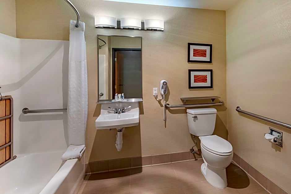 Guests will have a special experience as this suite offers a hot tub. Offering free toiletries, this suite includes a private bathroom with a bath and a hairdryer. This wheelchair accessible suite features air conditioning, a seating area with a flat-screen TV and a toilet with grab rails.